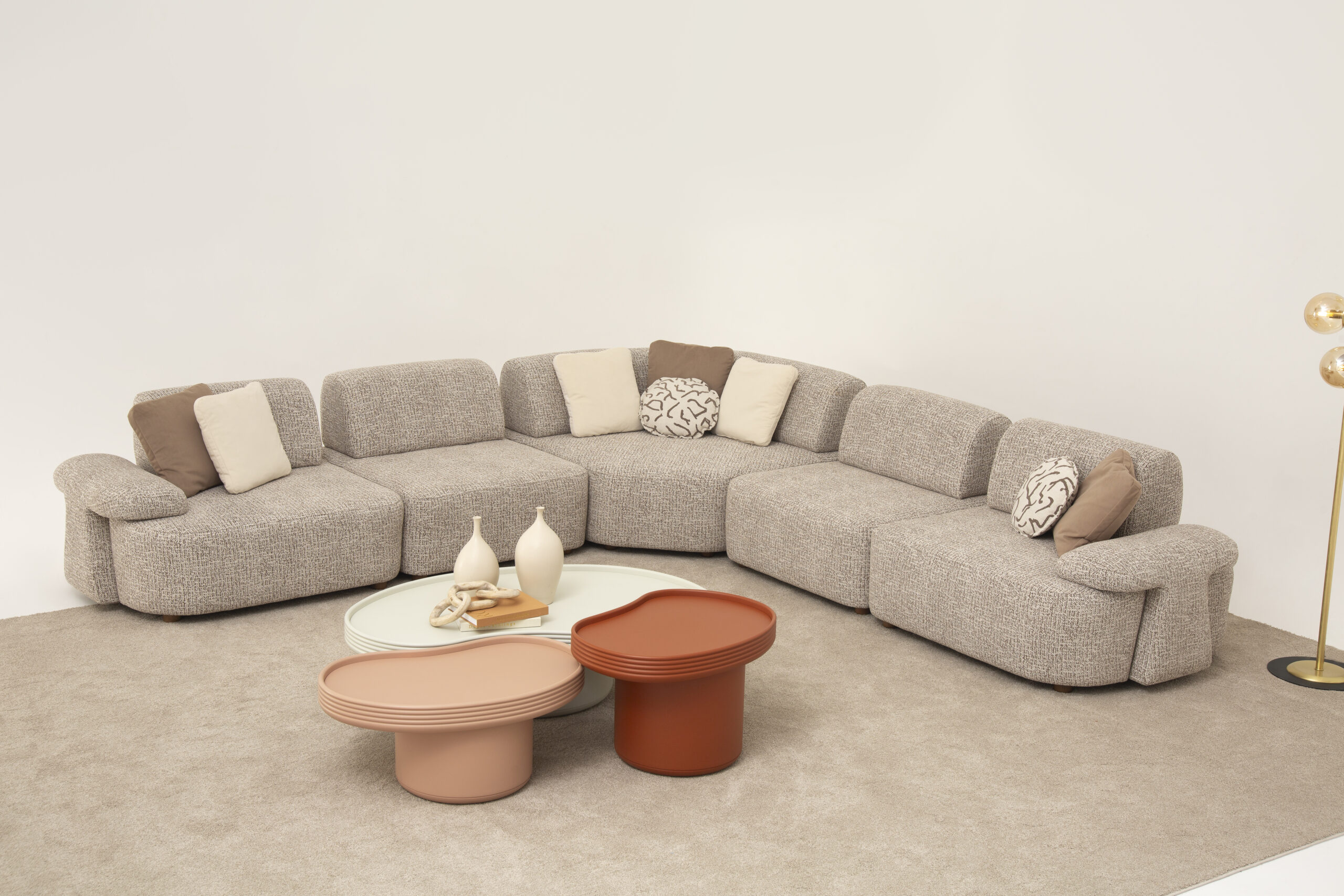 Modüler sistemler, farklı ünitelerin (kolsuz koltuk, köşe parçası, puf, sehpa modülü) birleştirilmesiyle özelleştirilmiş bir oturma alanı yaratma prensibine dayanır.
